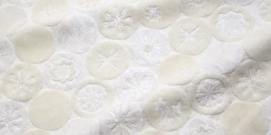 アイボリーとオフホワイトの糸が織りなす、やさしいフラワーデザイン